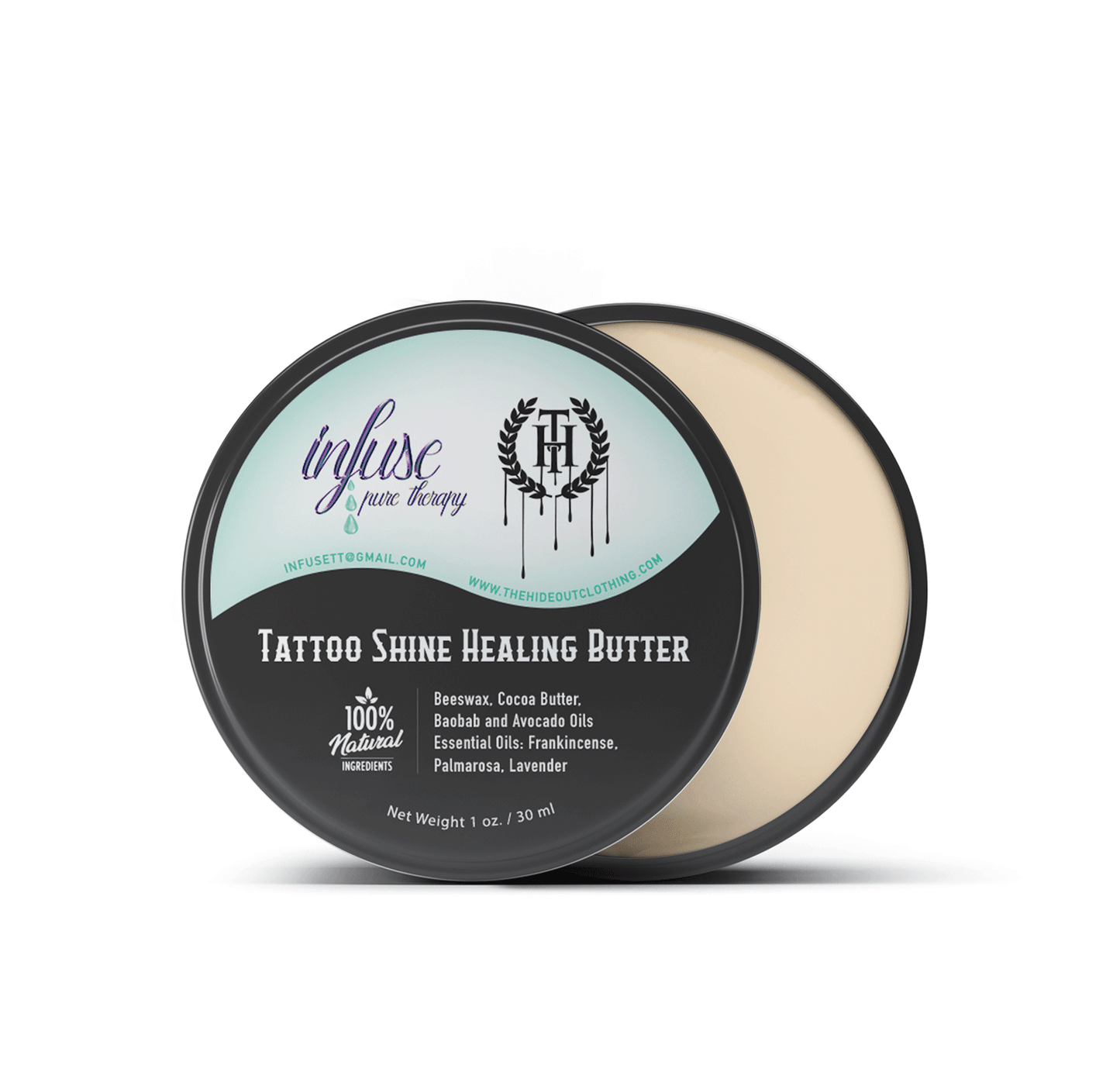 Inspired by @thehideoutclothing we created this blend to give you Tattoo enthusiasts a rich healing balm to protect and heal that ink so your tattoos shine! In a base of nourishing and hydrating carrier oils, we have blended Palmarosa, Lavender and Frankincense essential oils! Available only at the Hideout Clothing Store website.
